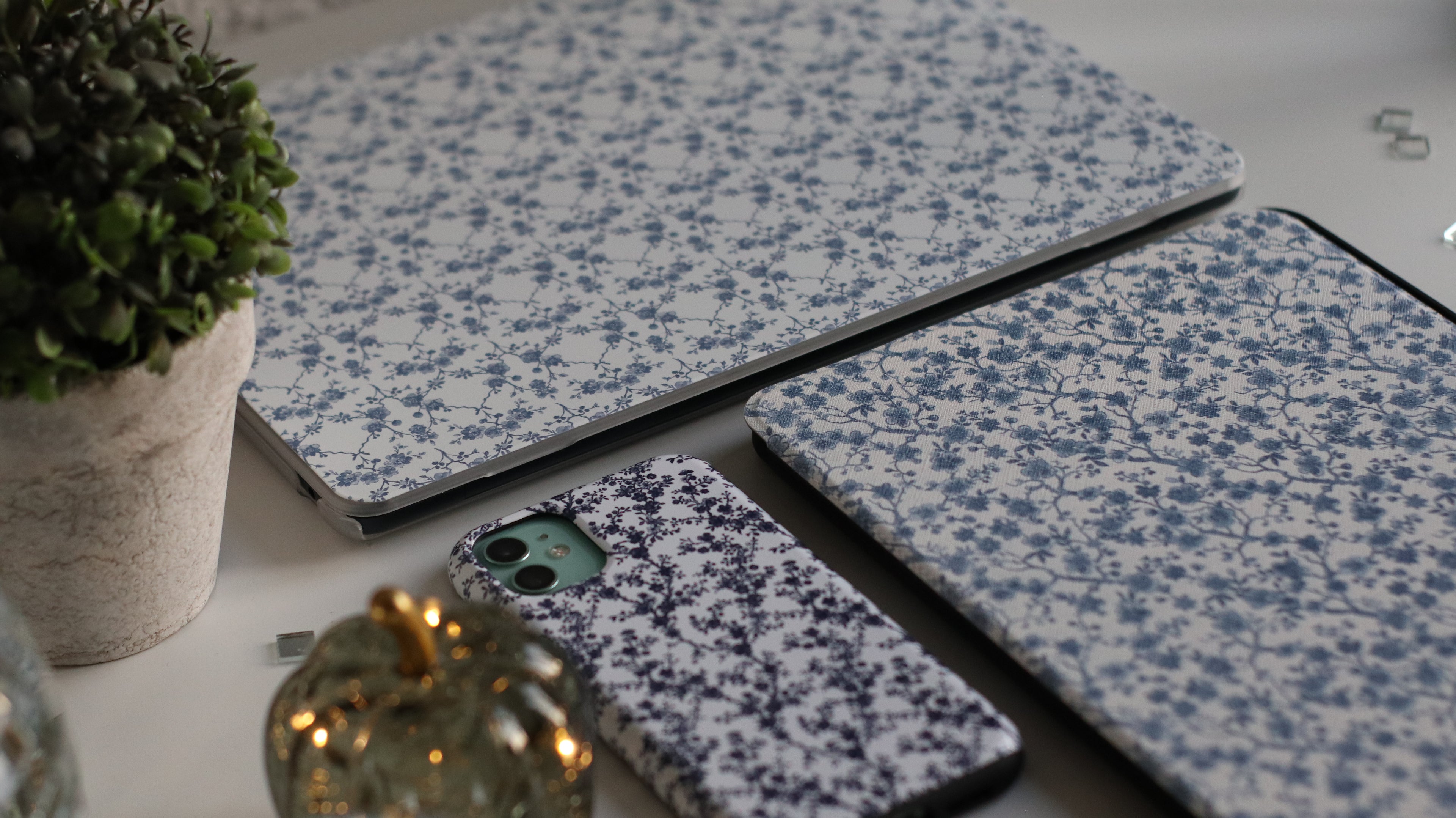 Azure Botanics Collection | Ashen Whispers | Minimal Grey-Blue Botanical AirPods Tough Case