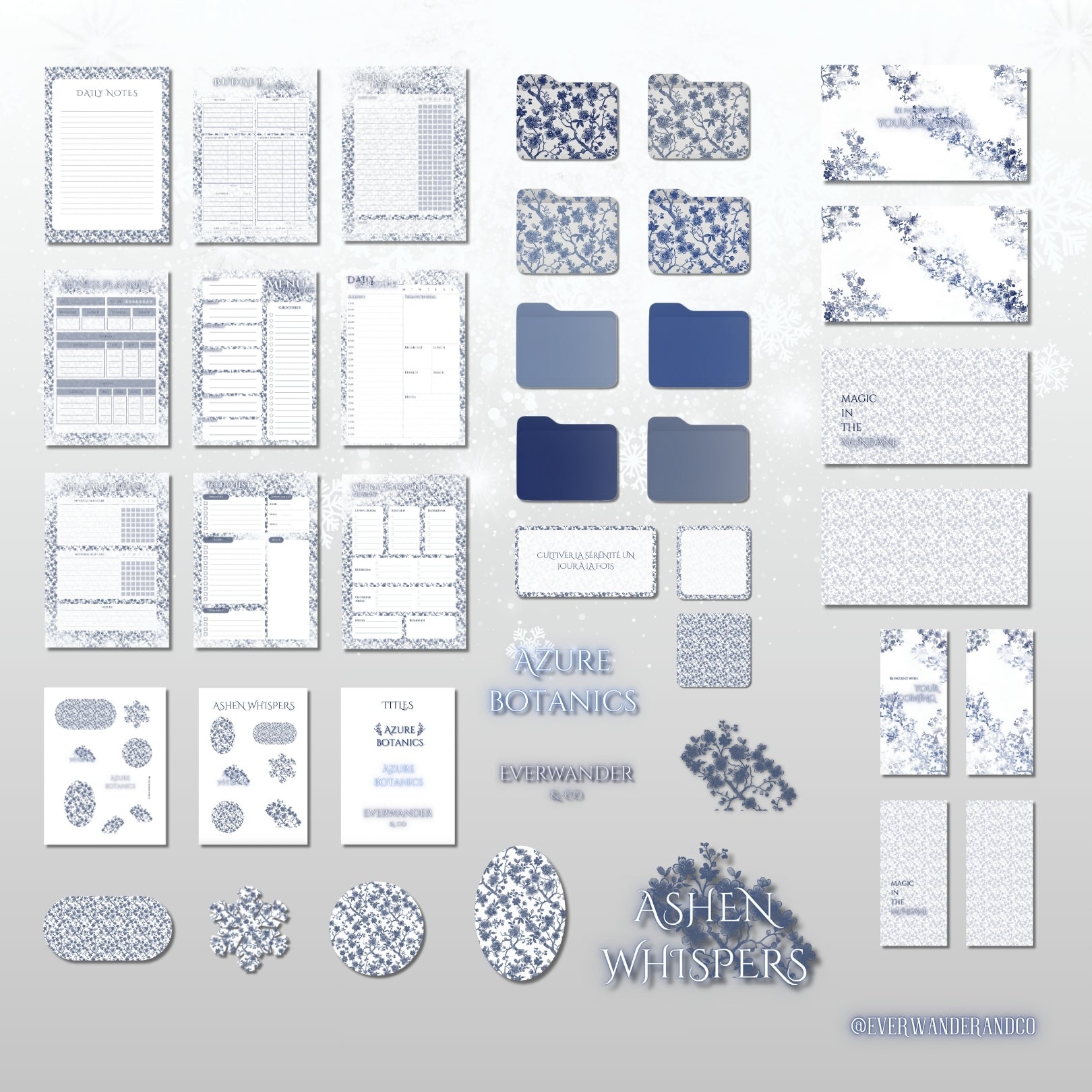 - 8 Individual Digital Stickers (.PNG): Delicate transparent illustrations.