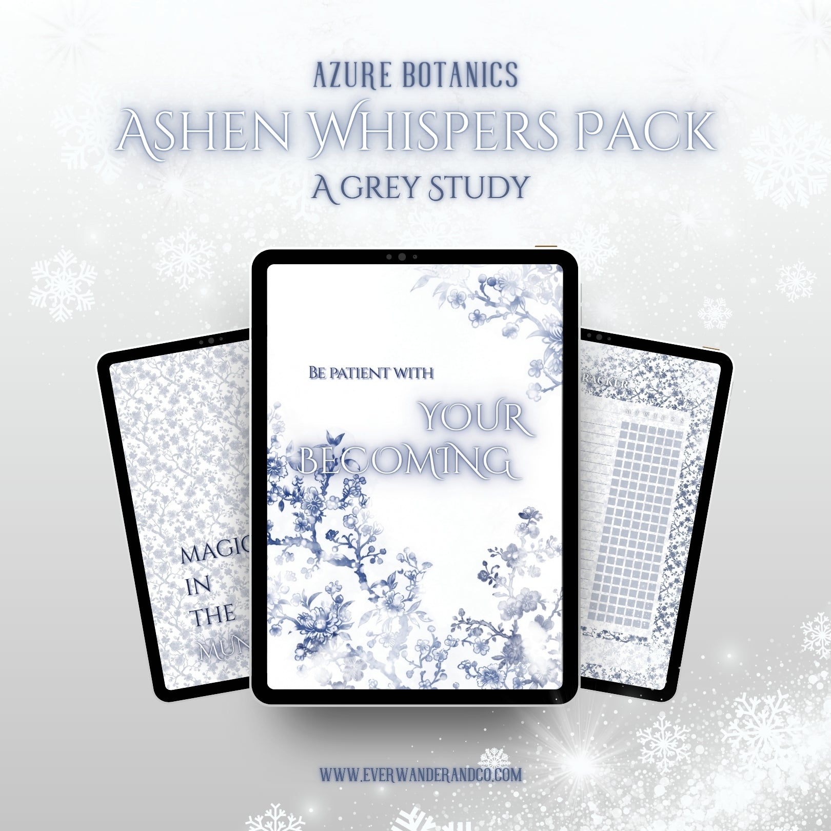 Ashen Whispers — A Grey Study I Azure Botanics Digital Aesthetic Pack
